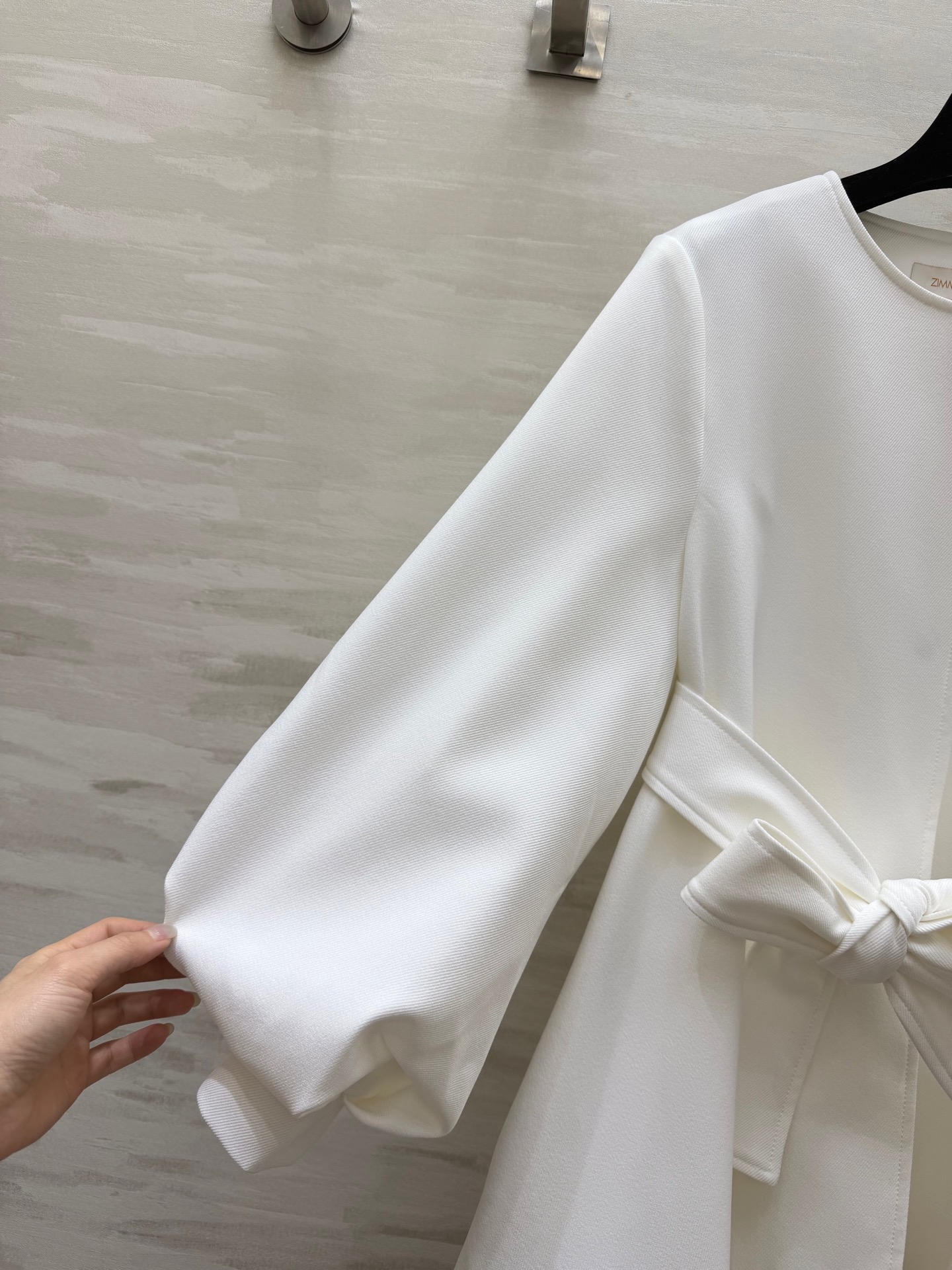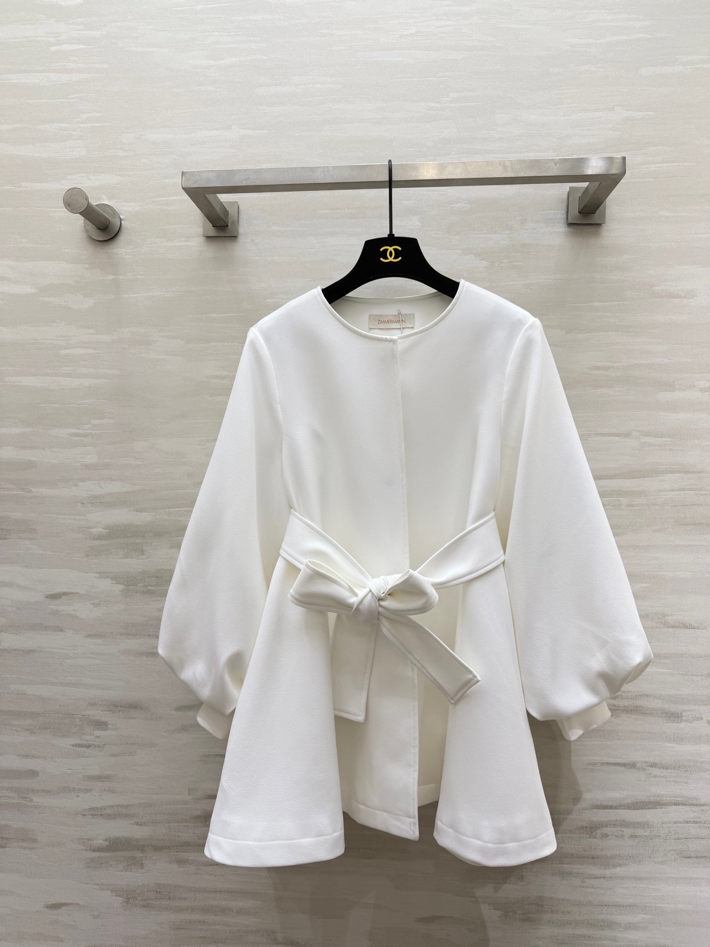 686360. ZIMMERMAN²⁶ Spring/Summer New Arrival Lantern Sleeve Waist-cinching Jacket. Belt cinches the waist for a flattering silhouette. Available in black and white. S/M/L/XL (S size: Shoulder width: 38cm, Bust: 100cm, Length: 73cm)